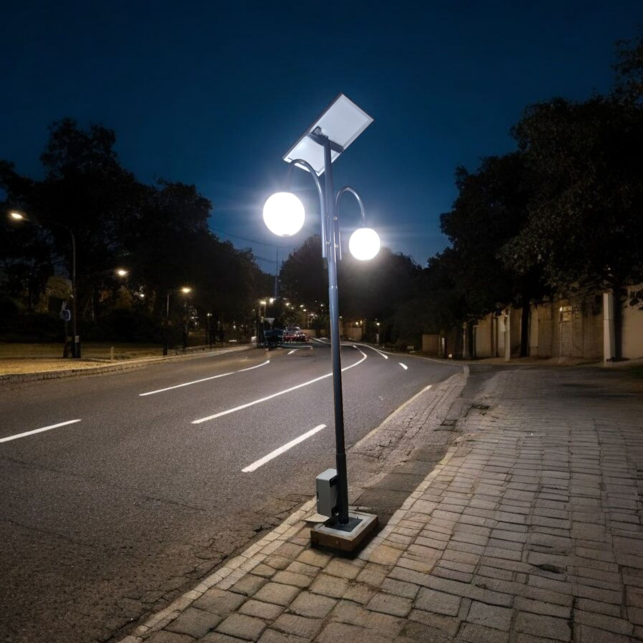 Lampadar cu 2 brate si lampa solara