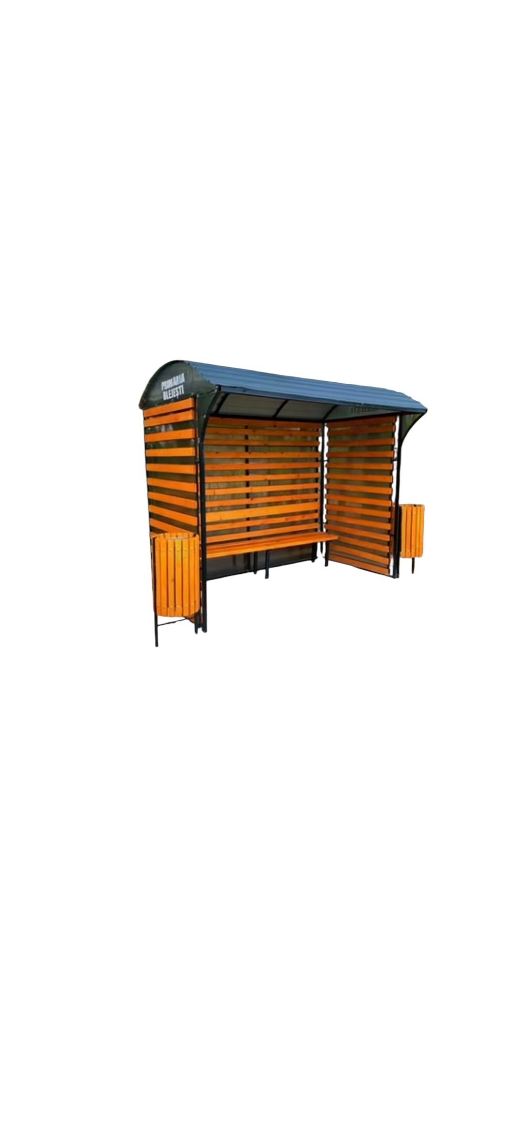 Statia de autobus este invelita in policarbonat peste policarbonat se pune ulucutele din lemn pentru a asigura mai multa rezistenta